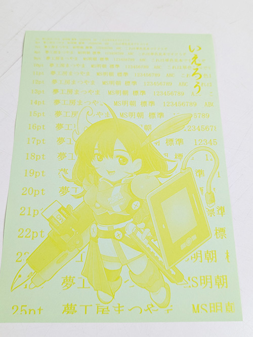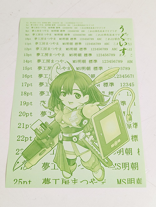 【色上質紙 うぐいす】の印刷見本